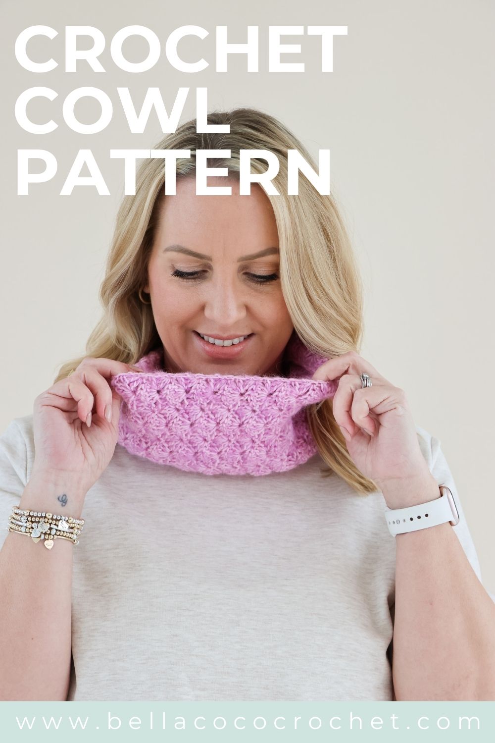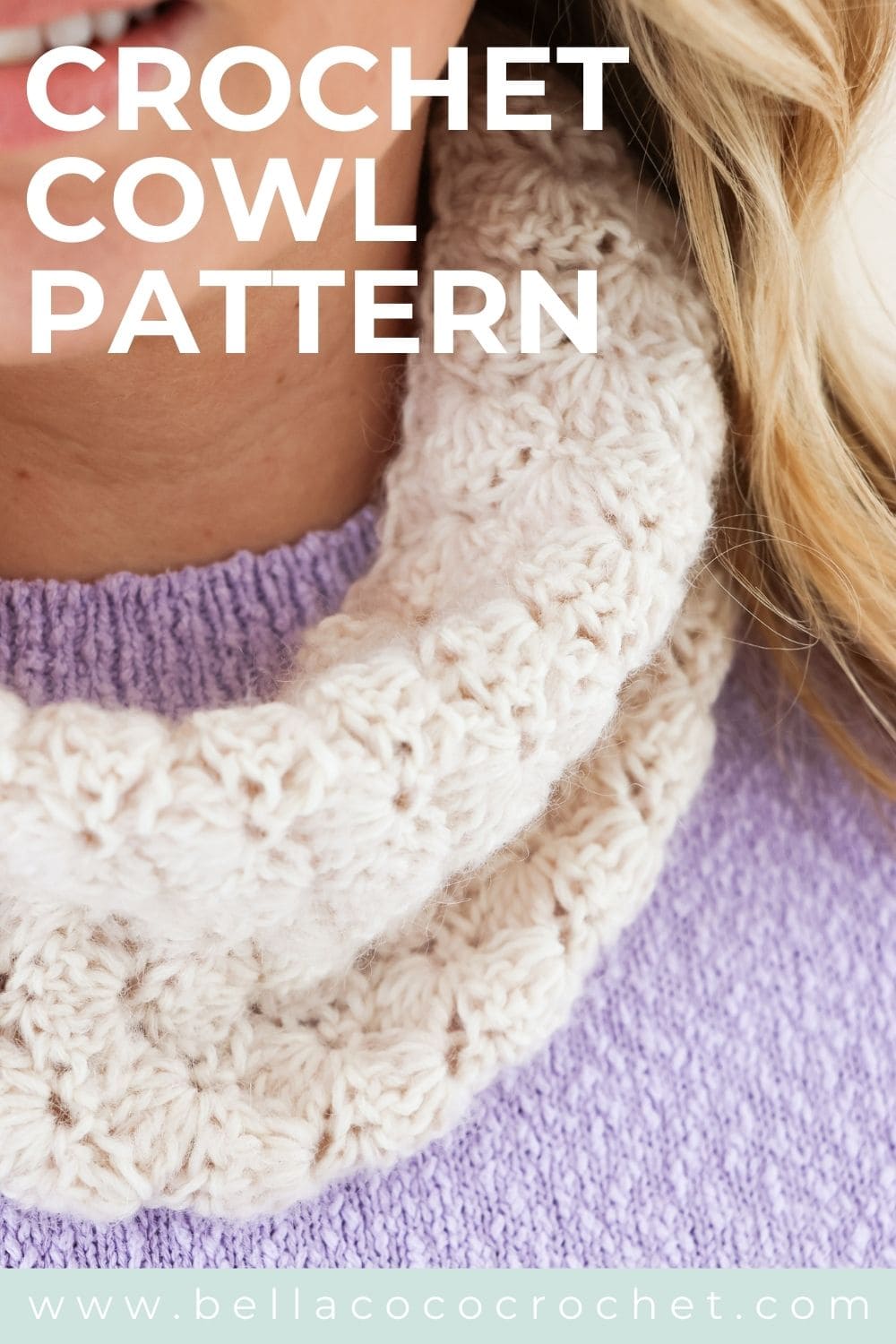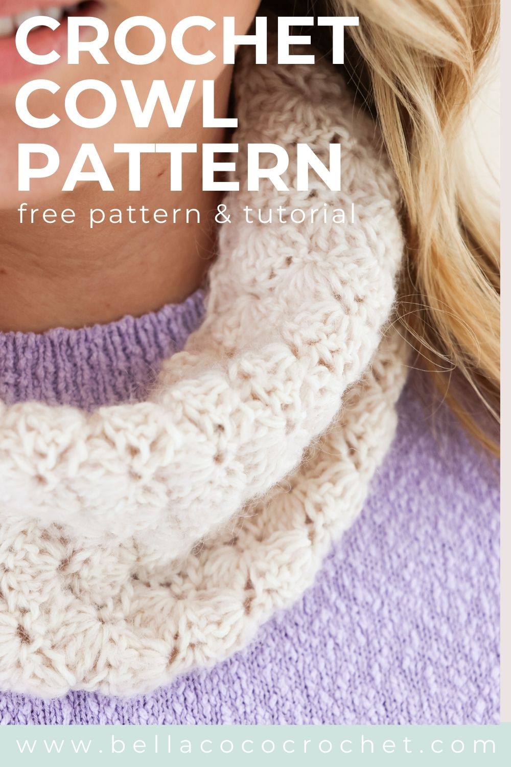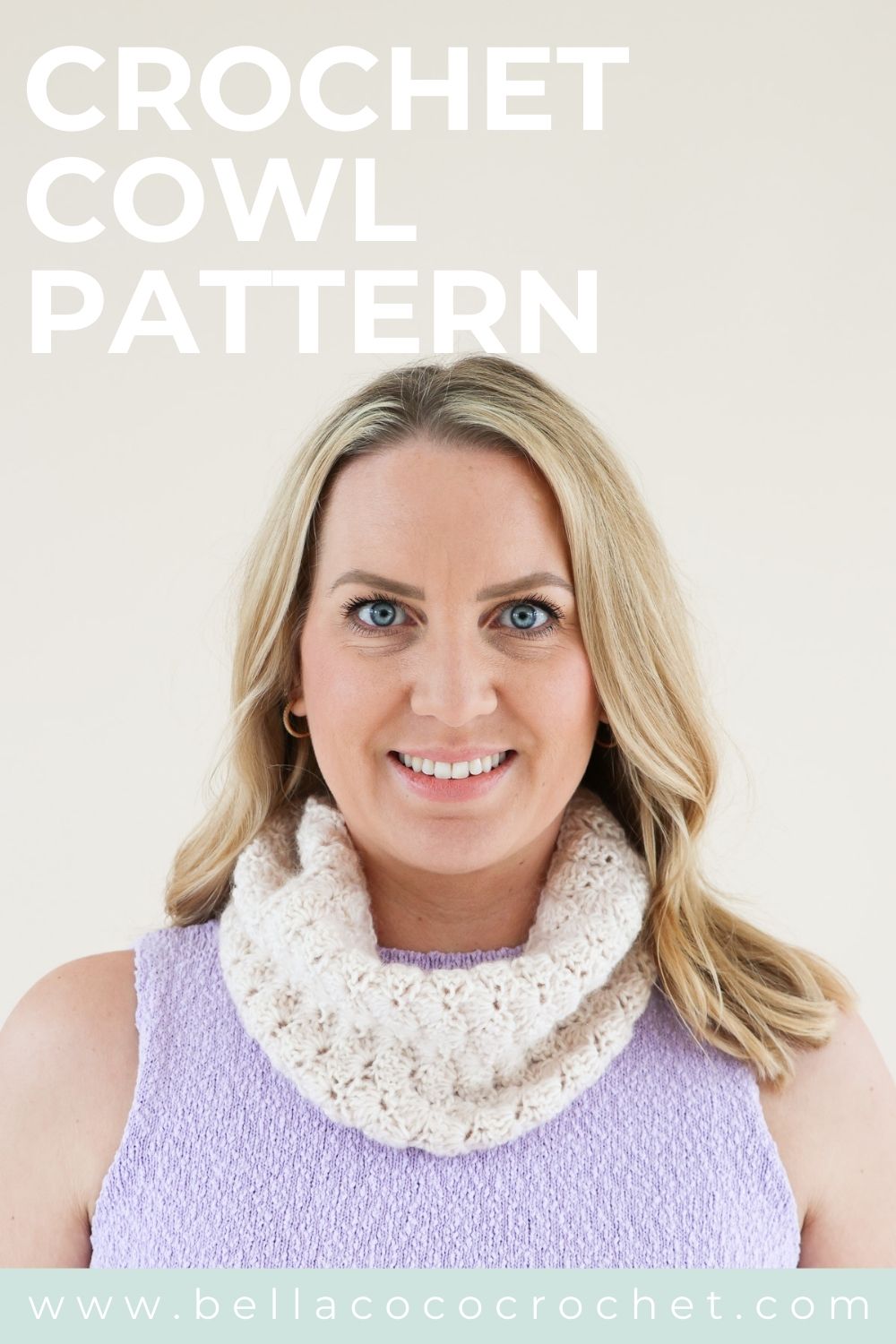 Beginners / Garments / Scarves & Cowls How to Crochet the Feyre Cowl: FREE Pattern & Tutorial Updated March 19, 2026 This post contains affiliate links. If you make a purchase through links on our site, I may earn a small commission. Click to see full details of my Privacy Policy. Pin it now, make later!40Shares How to crochet the Feyre Cowl with my free step-by-step pattern and video tutorial to guide you every step of the way.TABLE OF CONTENTS1. Materials & Tools2. About The Yarn: Bella Coco Merino 3. Where To Buy Yarn4. PDF Pattern5. Pattern Notes6. Gauge7. Completed Size8. Pin For Later9. Pattern Support10. Convert Pattern Terms11. Terms & Abbreviations12. Special stitches13. Feyre Cowl: Free Crochet Pattern14. Joining15. Video Tutorials 16. Right-handed17. Left-handed18. Explore More Crochet Cowl Patterns VIEW MORE▼ Crochet cowls are one of those projects that tick all the boxes, they’re stylish, practical, and wonderfully relaxing to make. Whether you’re looking for a cosy layer to keep the chill away or a handmade accessory that adds texture and personality to your wardrobe, a crochet cowl is always a great choice. In this post, I’m sharing a cowl design that’s perfect for mindful stitching, beautiful drape, and everyday wear, ideal for curling up with your favourite yarn and hook; introducing the Feyre Cowl. Materials & Tools Yarn A: Bella Coco Merino, 100% Merino Wool, Sport (#2), 50g (1.75oz), 165m (180yds), 180yds of shade 03 Cream. Yarn B: Hobbii Diablo, 40% Acrylic, 30% Mohair, 30% Polyamide, Lace (#0), 25g (0.9), 225m (246yds), 207yds of shade 10 Oyster. Hook: 5mm (US H-8) Scissors Darning Needle Measuring Tape About The Yarn: Bella Coco Merino Bella Coco Merino is an exclusive 100% merino wool yarn created in collaboration with Hobbii. Bella Coco Merino comes in a carefully curated colour palette reflecting my creative journey. From delicate pastels and muted shades to bright middle tones and vivid colours. shop the yarn here Where To Buy Yarn Wool Warehouse we crochet Mary maxium love crafts Herrschners PDF Pattern etsy bella coco crochet ravelry Pattern Notes This pattern is written in UK terms but switchable to US terms below. Skill Level: Beginner Pattern is worked holding the two strands of yarn together. It is made in a flat oblong before joining the foundation row andfinal row to form a circle. Light Blocking might be required once joined. Gauge 3 shells measures 4.5″9 rows per 4″measured before blocking Completed Size 8″ width22″ length Pin For Later Pattern Support The fastest way to get pattern support is to ask in our dedicated facebook group for Bella Coco Crochet patterns. This is the best place for you to connect with other crocheters. Please note, if you wish to change and adapt this pattern in any way, this must be done at your own exploration and we cannot offer assistance with this. Convert Pattern Terms Here you can quickly switch between UK and US crochet terms. This will make following the pattern easier as all terms will be converted to your preferred version. view in UK terms view in US terms Terms & Abbreviations Stitch(s): st(s) Slip Stitch(s): ss(s): Insert hook, yarn over, pull through stitch and loop on hook. Chain(s): ch(s): Yarn over, pull through loop on the hook. Repeat: rep: Double Crochet(s): dc(s): Insert hook into stitch, yarn over, pull up a loop, you will have two loops on the hook. Yarn over, pull through remaining two loops. Treble Crochet(s): tr(s): Yarn over, insert into stitch, yarn over, pull up a loop, you will have three loops on the hook. Yarn over, pull through two loops, yarn over, pull through remaining two loops. Special stitches Shell Stitch (ShSt): Work 5 tr into indicated stitch. Stitch counts are shown at the end of a row in angle brackets <> and are only provided when the stitch count changes. How to Crochet – A Handy Reference Guide eBook Unsure of the differences between UK and US terms? Need a refresher on how to do your crochet stitches? In my ‘How to crochet: A handy reference guide’ EBook I help you with all of these terms and you can always have them to hand! You will also get exclusive access to free video instructions. You can find my EBook HERE. Feyre Cowl: Free Crochet Pattern You are viewing this pattern in UK terms. Foundation: Ch 32 Row 1: Dc in second ch from hook (skipped ch does not count as st), *skip 2 chs, work a ShSt into next st, skip 2 chs, dc; rep from * across. Turn. <6 dc, 5 ShSt> Row 2: Ch 1 (does not count as st here or throughout), 3 tr in first st, *skip 2 sts, dc in middle tr of next ShSt, skip 2 sts, ShSt in next dc; rep from * across, working 3 tr in last dc. Turn. <5 dc, 4 ShSt, 6 tr> Row 3: Ch 1, dc in first st, skip 2 sts, *ShSt in next dc, skip 2 sts, dc in middle tr of next ShSt, skip 2 sts; rep from * across, working last dc in last st. Turn. <6 dc, 5 ShSt> Rows 4-51: Rep Rows 2 and 3 Row 52: Rep row 2 Joining For this section of the pattern, when working into the ‘dc and ShSt’ you will be working into the underside of that stitch. The underside of the ShSt is the st that all of the trs are worked into. Working through both thicknesses, insert hook into the final row and the foundation chain, ss into the first st and first dc of foundation, (ss in next st and ch-sp of foundation) twice. *Ss in next st and ShSt of foundation, (ss in next st and ch-sp of foundation) twice. Ss in next st and dc of foundation, (ss in next st and ch-sp of foundation) twice; rep from * three more times. Ss in next st and ShSt of foundation, (ss in next st and ch-sp of foundation) twice. Ss in last dc. Fasten off and sew in ends. Light blocking may be required. Video Tutorials Right-handed Or you can watch on YouTube Left-handed Or you can watch on YouTube Explore More Crochet Cowl Patterns Verity Infinity Scarf Houndstooth Cowl Dahlia Infinity Scarf Verity Infinity Scarf Houndstooth Cowl Dahlia Infiniy Scarf I always love to see your makes so if you try any of my patterns or