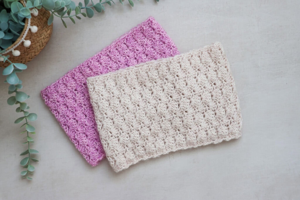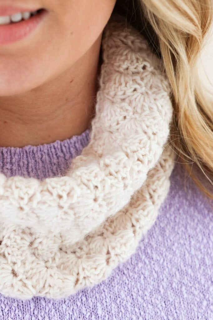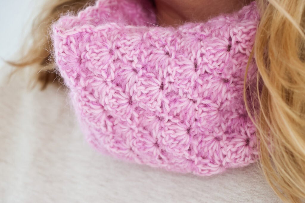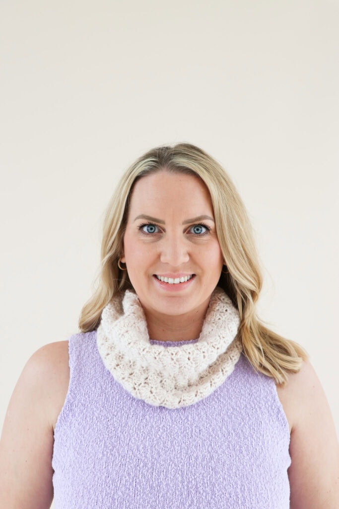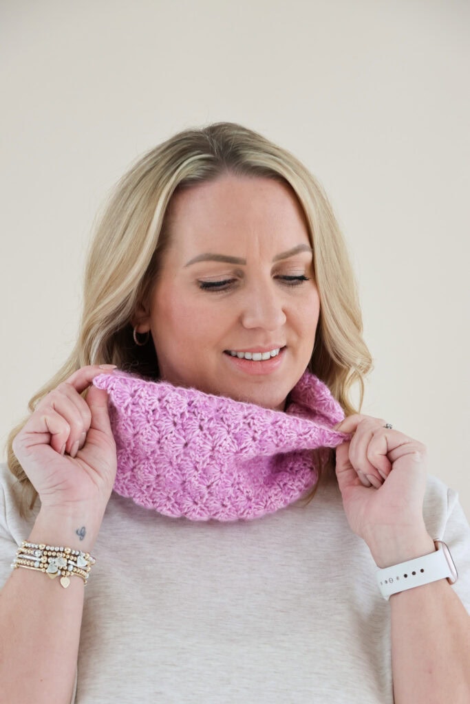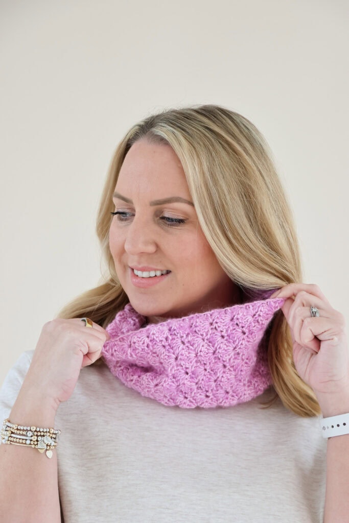 Beginners / Garments / Scarves & Cowls How to Crochet the Feyre Cowl: FREE Pattern & Tutorial Updated March 19, 2026 This post contains affiliate links. If you make a purchase through links on our site, I may earn a small commission. Click to see full details of my Privacy Policy. Pin it now, make later!40Shares How to crochet the Feyre Cowl with my free step-by-step pattern and video tutorial to guide you every step of the way.TABLE OF CONTENTS1. Materials & Tools2. About The Yarn: Bella Coco Merino 3. Where To Buy Yarn4. PDF Pattern5. Pattern Notes6. Gauge7. Completed Size8. Pin For Later9. Pattern Support10. Convert Pattern Terms11. Terms & Abbreviations12. Special stitches13. Feyre Cowl: Free Crochet Pattern14. Joining15. Video Tutorials 16. Right-handed17. Left-handed18. Explore More Crochet Cowl Patterns VIEW MORE▼ Crochet cowls are one of those projects that tick all the boxes, they’re stylish, practical, and wonderfully relaxing to make. Whether you’re looking for a cosy layer to keep the chill away or a handmade accessory that adds texture and personality to your wardrobe, a crochet cowl is always a great choice. In this post, I’m sharing a cowl design that’s perfect for mindful stitching, beautiful drape, and everyday wear, ideal for curling up with your favourite yarn and hook; introducing the Feyre Cowl. Materials & Tools Yarn A: Bella Coco Merino, 100% Merino Wool, Sport (#2), 50g (1.75oz), 165m (180yds), 180yds of shade 03 Cream. Yarn B: Hobbii Diablo, 40% Acrylic, 30% Mohair, 30% Polyamide, Lace (#0), 25g (0.9), 225m (246yds), 207yds of shade 10 Oyster. Hook: 5mm (US H-8) Scissors Darning Needle Measuring Tape About The Yarn: Bella Coco Merino Bella Coco Merino is an exclusive 100% merino wool yarn created in collaboration with Hobbii. Bella Coco Merino comes in a carefully curated colour palette reflecting my creative journey. From delicate pastels and muted shades to bright middle tones and vivid colours. shop the yarn here Where To Buy Yarn Wool Warehouse we crochet Mary maxium love crafts Herrschners PDF Pattern etsy bella coco crochet ravelry Pattern Notes This pattern is written in UK terms but switchable to US terms below. Skill Level: Beginner Pattern is worked holding the two strands of yarn together. It is made in a flat oblong before joining the foundation row andfinal row to form a circle. Light Blocking might be required once joined. Gauge 3 shells measures 4.5″9 rows per 4″measured before blocking Completed Size 8″ width22″ length Pin For Later Pattern Support The fastest way to get pattern support is to ask in our dedicated facebook group for Bella Coco Crochet patterns. This is the best place for you to connect with other crocheters. Please note, if you wish to change and adapt this pattern in any way, this must be done at your own exploration and we cannot offer assistance with this. Convert Pattern Terms Here you can quickly switch between UK and US crochet terms. This will make following the pattern easier as all terms will be converted to your preferred version. view in UK terms view in US terms Terms & Abbreviations Stitch(s): st(s) Slip Stitch(s): ss(s): Insert hook, yarn over, pull through stitch and loop on hook. Chain(s): ch(s): Yarn over, pull through loop on the hook. Repeat: rep: Double Crochet(s): dc(s): Insert hook into stitch, yarn over, pull up a loop, you will have two loops on the hook. Yarn over, pull through remaining two loops. Treble Crochet(s): tr(s): Yarn over, insert into stitch, yarn over, pull up a loop, you will have three loops on the hook. Yarn over, pull through two loops, yarn over, pull through remaining two loops. Special stitches Shell Stitch (ShSt): Work 5 tr into indicated stitch. Stitch counts are shown at the end of a row in angle brackets <> and are only provided when the stitch count changes. How to Crochet – A Handy Reference Guide eBook Unsure of the differences between UK and US terms? Need a refresher on how to do your crochet stitches? In my ‘How to crochet: A handy reference guide’ EBook I help you with all of these terms and you can always have them to hand! You will also get exclusive access to free video instructions. You can find my EBook HERE. Feyre Cowl: Free Crochet Pattern You are viewing this pattern in UK terms. Foundation: Ch 32 Row 1: Dc in second ch from hook (skipped ch does not count as st), *skip 2 chs, work a ShSt into next st, skip 2 chs, dc; rep from * across. Turn. <6 dc, 5 ShSt> Row 2: Ch 1 (does not count as st here or throughout), 3 tr in first st, *skip 2 sts, dc in middle tr of next ShSt, skip 2 sts, ShSt in next dc; rep from * across, working 3 tr in last dc. Turn. <5 dc, 4 ShSt, 6 tr> Row 3: Ch 1, dc in first st, skip 2 sts, *ShSt in next dc, skip 2 sts, dc in middle tr of next ShSt, skip 2 sts; rep from * across, working last dc in last st. Turn. <6 dc, 5 ShSt> Rows 4-51: Rep Rows 2 and 3 Row 52: Rep row 2 Joining For this section of the pattern, when working into the ‘dc and ShSt’ you will be working into the underside of that stitch. The underside of the ShSt is the st that all of the trs are worked into. Working through both thicknesses, insert hook into the final row and the foundation chain, ss into the first st and first dc of foundation, (ss in next st and ch-sp of foundation) twice. *Ss in next st and ShSt of foundation, (ss in next st and ch-sp of foundation) twice. Ss in next st and dc of foundation, (ss in next st and ch-sp of foundation) twice; rep from * three more times. Ss in next st and ShSt of foundation, (ss in next st and ch-sp of foundation) twice. Ss in last dc. Fasten off and sew in ends. Light blocking may be required. Video Tutorials Right-handed Or you can watch on YouTube Left-handed Or you can watch on YouTube Explore More Crochet Cowl Patterns Verity Infinity Scarf Houndstooth Cowl Dahlia Infinity Scarf Verity Infinity Scarf Houndstooth Cowl Dahlia Infiniy Scarf I always love to see your makes so if you try any of my patterns or