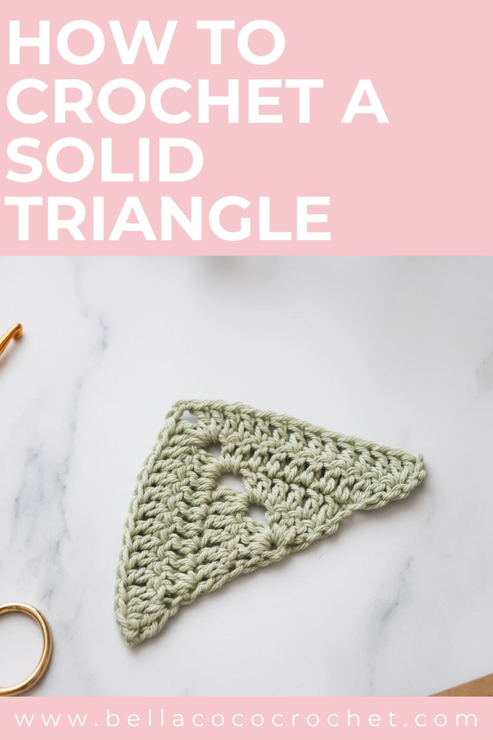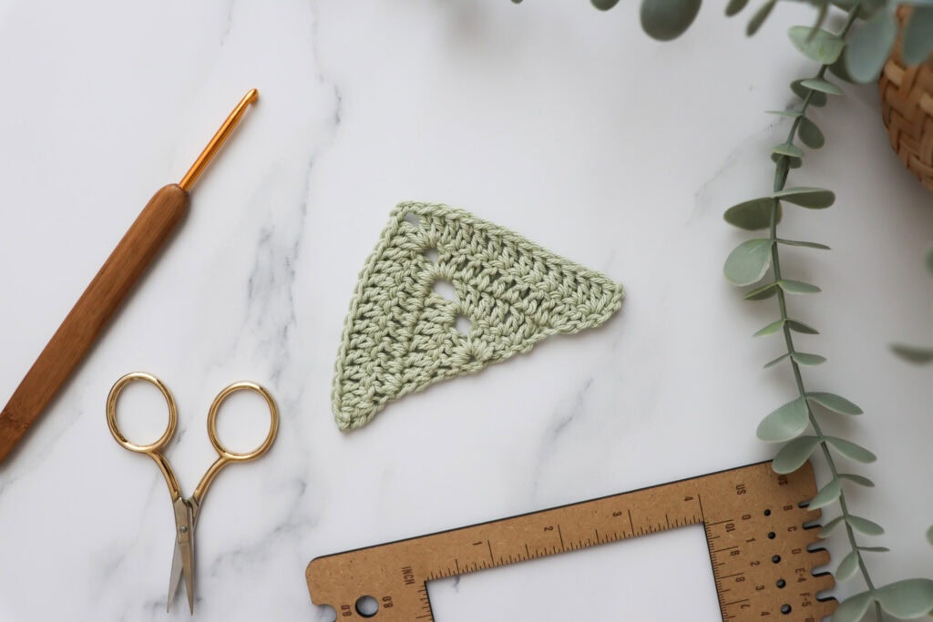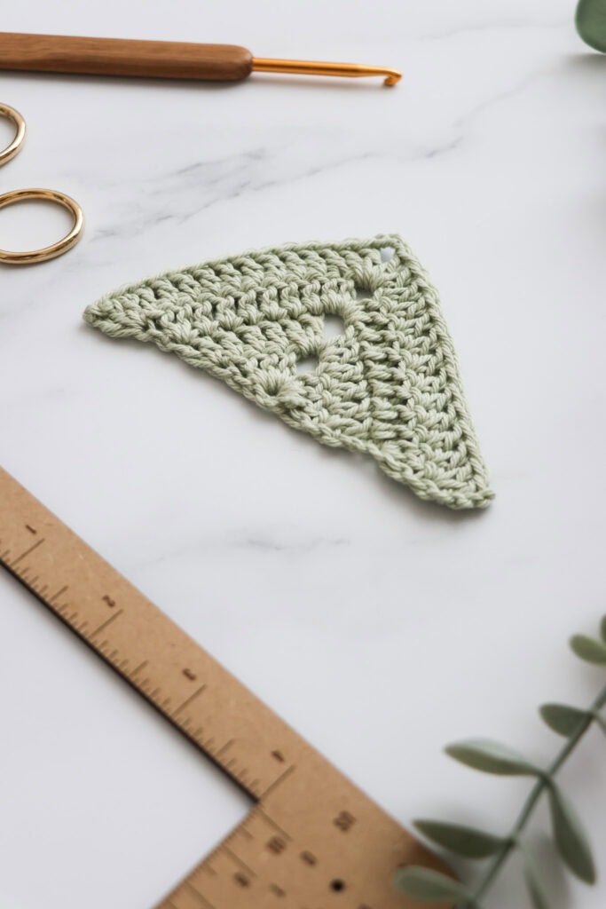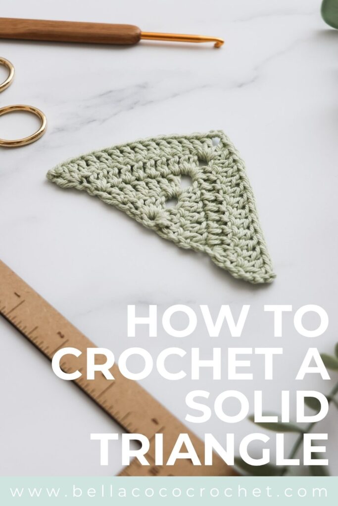 Stitch Library How to Crochet the Solid Granny Triangle Updated November 12, 2025 This post contains affiliate links. If you make a purchase through links on our site, I may earn a small commission. Click to see full details of my Privacy Policy. Pin it now, make later!35Shares Learn how to crochet the solid granny triangle with my free step-by-step pattern. This simple shape is quick, satisfying, and incredibly versatile. Whether you’re a beginner practising your stitches or an experienced crocheter adding to your motif collection, this free crochet pattern will walk you through every step.TABLE OF CONTENTS1. Way to use a Crochet Triangle 2. Pattern Notes3. Pattern Support4. Materials & Tools5. Where To Shop Yarn6. Convert Pattern Terms7. Terms & Abbreviations8. Pin For Later9. Free Crochet Pattern: Solid Granny Triangle10. Crochet Stitches To Try Next VIEW MORE▼ Way to use a Crochet Triangle Bunting/Garlands: String triangles together for party decorations, baby showers, or to add a cosy handmade touch to your craft room or garden. Blankets and Throws: Join multiple triangles to form hexagons, diamonds, or other geometric patterns. It’s a fun twist on traditional granny square blankets! Bandanas and Headscarves: A single large triangle can become a trendy hair accessory or summer bandana. Pattern Notes Written in UK terms but switchable to US crochet terms below. Skill Level: Intermediate Pattern Support The fastest way to get pattern support is to ask in our dedicated facebook group for Bella Coco Crochet patterns. This is the best place for you to connect with other crocheters. Please note, if you wish to change and adapt this pattern in any way, this must be done at your own exploration and we cannot offer assistance with this. Materials & Tools Yarn: You can use any weight yarn and recommended hook size that can be found on the belly band to your chosen yarn. Hook: Use the corresponding hook size to the yarn weight chosen. Darning Needle Scissors Tape Measure Blocking Board (optional) Where To Shop Yarn Wool Warehouse we crochet Mary maxium love crafts Herrschners Convert Pattern Terms Here you can quickly switch between UK and US crochet terms. This will make following the pattern easier as all terms will be converted to your preferred version. view in UK terms view in US terms Terms & Abbreviations Chain(s): ch(s): Yarn over, pull through loop on the hook. Slip Stitch(s): ss(s): Insert hook, yarn over, pull through stitch and loop on hook. Treble Crochet(s): tr(s): Yarn over, insert into stitch, yarn over, pull up a loop, you will have three loops on the hook. Yarn over, pull through two loops, yarn over, pull through remaining two loops. How to Crochet – A Handy Reference Guide eBook Unsure of the differences between UK and US terms? Need a refresher on how to do your crochet stitches? In my ‘How to crochet: A handy reference guide’ EBook I help you with all of these terms and you can always have them to hand! You will also get exclusive access to free video instructions. You can find my EBook HERE. Pin For Later Free Crochet Pattern: Solid Granny Triangle You are viewing this pattern in UK terms. Ch 4, ss in first ch to form a circle. Row 1: 3 ch (counts as tr here and throughout) into ring work 3 tr, 3 ch, 4 tr). Turn. (8 tr, 1 3-ch sp.) Row 2: 3 ch, tr in st at base of 3-ch, tr in next 3 sts, [2 tr, 3 ch, 2 tr] in 3-ch sp, tr in next 3 sts, 2 tr in top of 3-ch. Turn. (14 tr, 1 3-ch sp.) Row 3: 3 ch, 2 tr in st at base of 3-ch, tr in each st to 3-ch sp, [2 tr, 3 ch, 2 tr] in 3-ch sp, tr in each st to last st, 3 tr in top of 3-ch. Turn. (22 tr, 1 3-ch sp.) Row 4: rep Row 3. (30 tr, 1 3-ch sp). Rep Row 3 until desired size. Fasten off and sew in ends. Crochet Stitches To Try Next Have you tried these crochet shapes? Crochet Hexagon Granny Triangle Solid Hexagon Granny Rectangle Click below to explore the FREE stitch library. I always love to see your makes so if you try any of my patterns or follow my stitch tutorials please tag me @bellacococrochet or use the #bellacococrochet sarah-jayne KEEP ON making Don’t miss a thing! Sign up to our newsletter, grab a cuppa and find out about the latest posts and projects. First name Email address Thanks! Please check your inbox (and junk) to confirm your subscription! Pin it now, make later!35Shares Further Reading... Learn the Spider Stitch – Free Crochet Tutorial May 16, 2020 Learn How to Crochet the Triple Treble Stitch April 17, 2025 How to Crochet a Granny Rectangle: FREE Pattern November 20, 2025 No Comments Leave a Reply Cancel Reply Save my name, email, and website in this browser for the next time I comment.