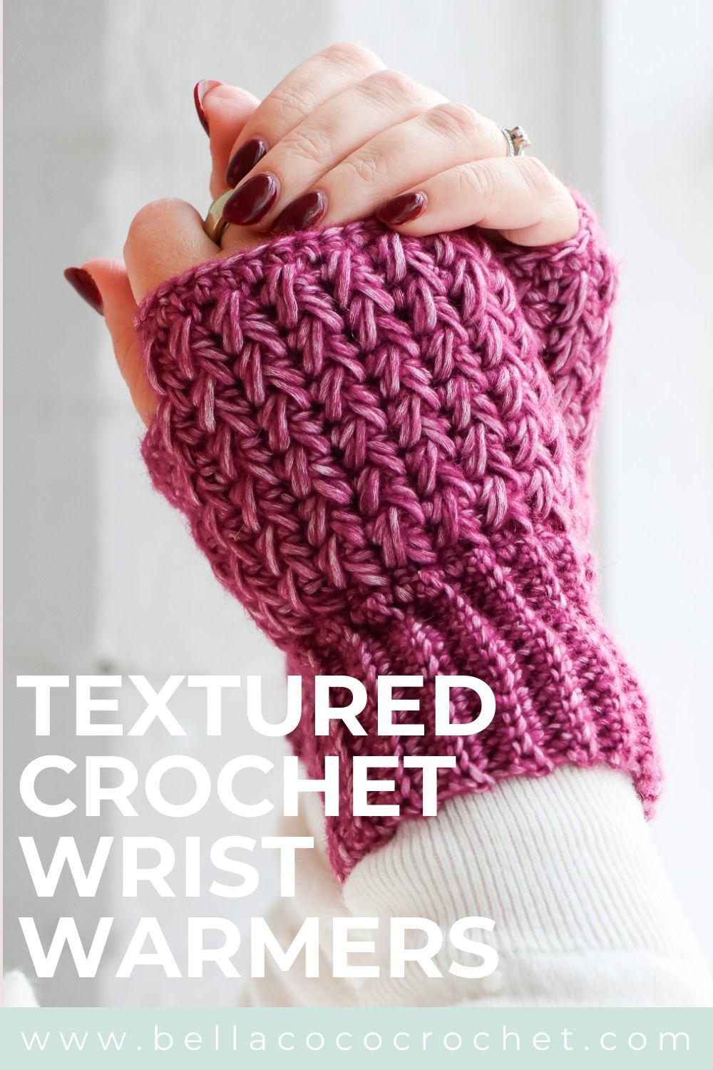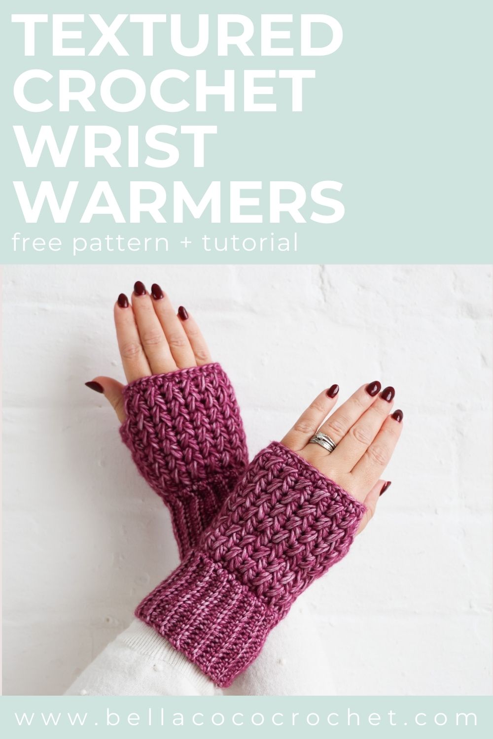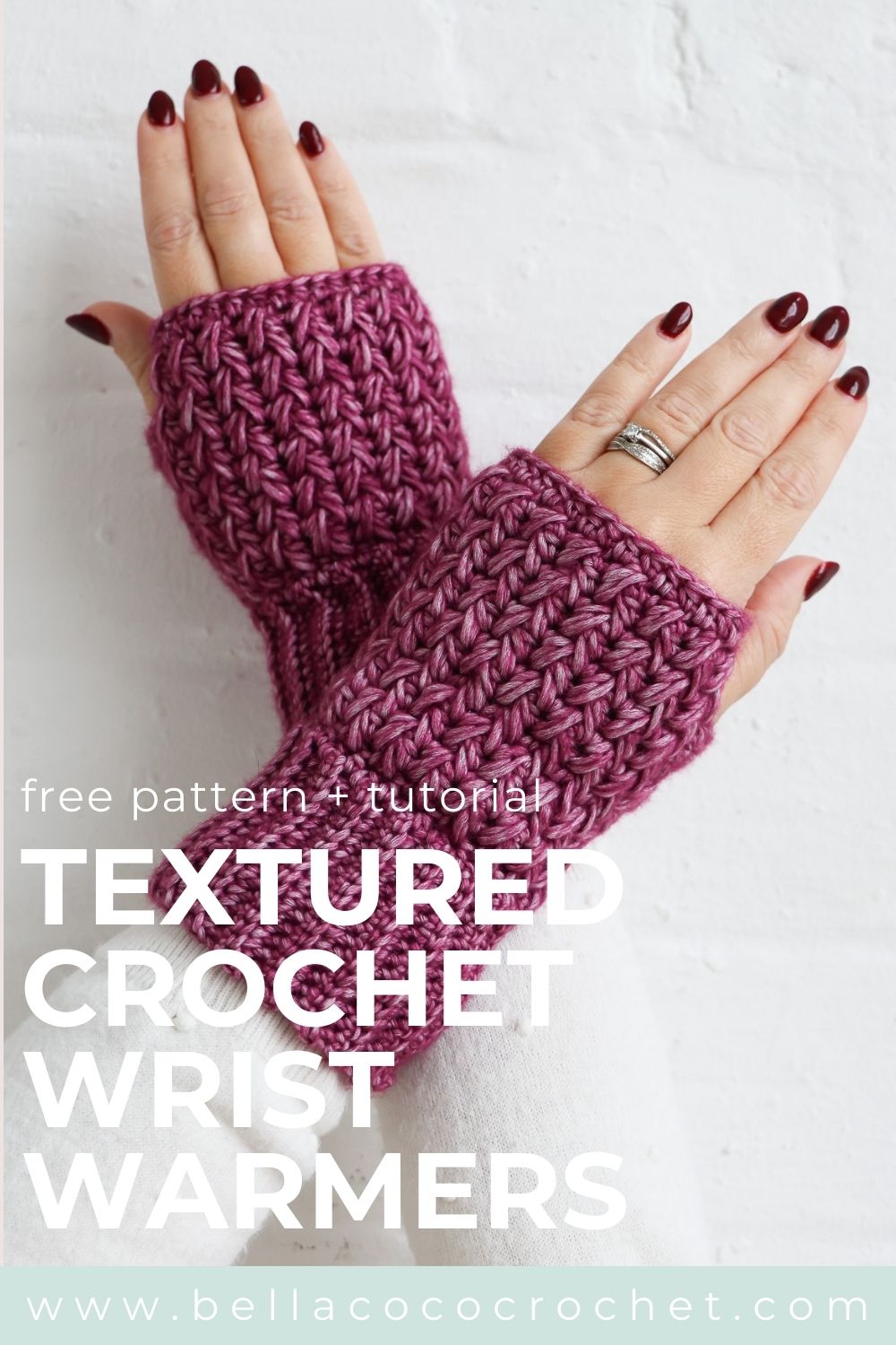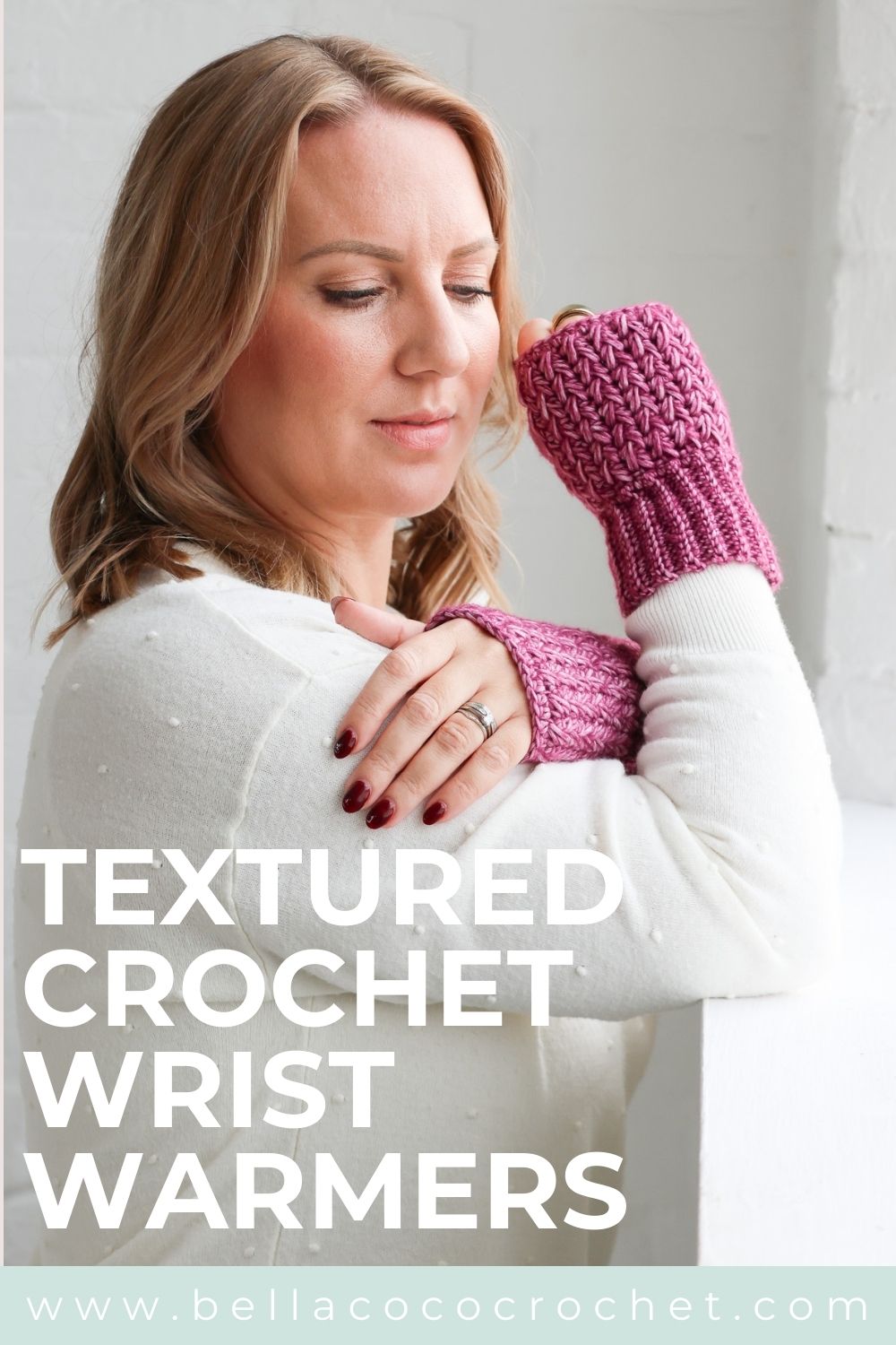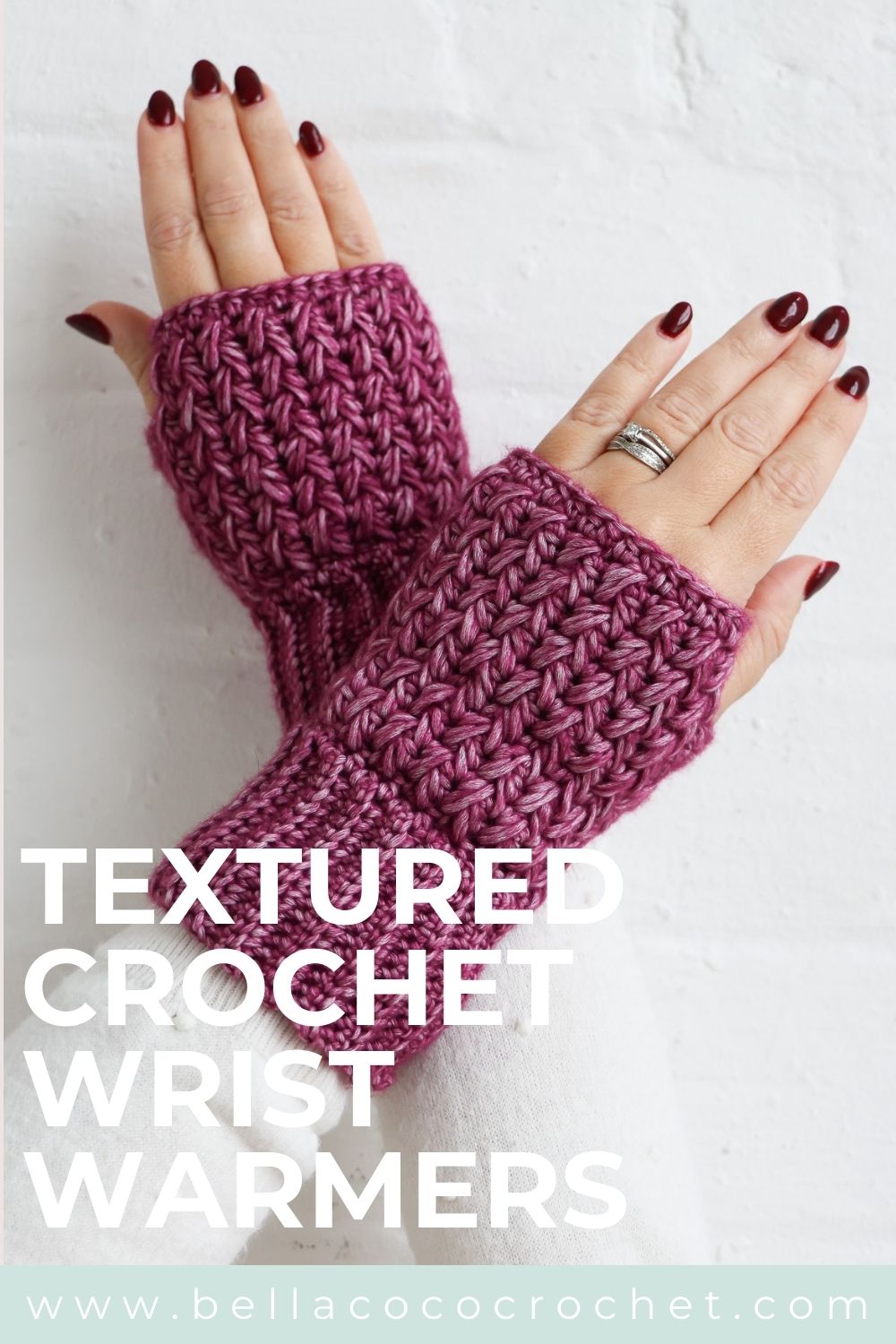 Garments / Mittens & Wrist Warmers Textured Crochet Wrist Warmers – Free Pattern & Video Tutorial Updated January 2, 2026 This post contains affiliate links. If you make a purchase through links on our site, I may earn a small commission. Click to see full details of my Privacy Policy. Pin it now, make later!1.6KShares Learn how to crochet these textured crochet wrist warmers with this free step-by-step pattern and video tutorial. During the cooler seasons, there’s nothing quite like a quick, stylish accessory project to warm up your hook. The Maplewood Wrist warmers are perfect for a confident beginner ready to explore new textures or a seasoned crocheter looking for a quick win, these wrist warmers are the perfect project.TABLE OF CONTENTS1. Why You’ll Love This Pattern2. Materials & Tools 3. About the Yarn4. Where to Shop Yarn5. Convert Pattern Terms6. Terms & Abbreviations 7. Special Stitches8. Beginning Feather Stitch (BFS):9. Feather Stitch (FeS):10. Feather Stitch (FeSin):11. Pattern Notes 12. Gauge13. Size and Yarn Quantities14. Pattern Support15. PDF Pattern16. Pin For Later17. Free Pattern: Maplewood Wrist Warmers 18. Main Section19. Thumb Opening20. Large ONLY21. All Sizes22. Video Tutorials23. Right-handed24. Left-handed 25. Patterns to Try NextVIEW MORE▼ Why You’ll Love This Pattern Quick to make: these are achiveable to make over a weekend or quicker depending how quickly you crochet. Beautifully textured: looks intricate but uses simple stitches that create this beautiful, feathered surface texture. Beginner-friendly: the step-by-step pattern and video tutorial makes it accessible to all levels! Materials & Tools Yarn: Yarnsmiths Pebble Haze DK (#3), 33% acrylic, 67% Cotton, 50g (1.75oz), 145m (159yds) Shades used in samples: Porphyry Hook: 4mm (US G-6) Darning Needle Scissors Stitch Markers (Optional) About the Yarn Yarnsmiths Pebble Haze DK is part of the ever-growing Yarnsmiths family. This DK is a soft and beautiful yarn, in a range of stunning shades inspired by nature’s beaches, pebbles and stones! It’s perfect for all crocheted projects, including jumpers, cardigans, children’s wear, homeware, and accessories. I’ll share some of my favourite shades below. Ludlamite Fluorite Pink Tourmaline Coral Where to Shop Yarn Wool Warehouse we crochet Mary maxium love crafts Herrschners Convert Pattern Terms Here you can quickly switch between UK and US crochet terms. This will make following the pattern easier as all terms will be converted to your preferred version. view in UK terms view in US terms Terms & Abbreviations Stitch(s): st(s) Slip Stitch(s): ss(s): Insert hook, yarn over, pull through stitch and loop on hook. Chain(s): ch(s): Yarn over, pull through loop on the hook. Double Crochet(s): dc(s): Insert hook into stitch, yarn over, pull up a loop, you will have two loops on the hook. Yarn over, pull through remaining two loops. Half Treble Crochet(s):htr(s):Yarn over, insert into stitch, yarn over, pull up a loop, you will have three loops on the hook. Yarn over, pull through remaining three loops. Back Loop Only: BLO: Working into the back loop only of a stitch. Special Stitches Beginning Feather Stitch (BFS): Yarn over, insert hook into first ch-sp, yarn over, pull up a loop in line with loops on the hook (3 loops on hook), yarn over, insert hook into ch-1 sp or skipped st two rows below, yarn over, pull up a loop in line with loops on the hook (5 loops on hook), yarn over, insert hook in next ch-1 sp, yarn over and pull up a loop in line with loops on the hook, yarn over and pull through all 7 loops on the hook. Feather Stitch (FeS): Yarn over, insert hook into same ch-1 sp as last part of previous BFS or FeS, yarn over and pull up a loop in line with loops on the hook (3 loops on hook), yarn over, insert hook into ch-1 sp or skipped st two rows below, yarn over and pull up a loop in line with loops on the hook (5 loops on hook), yarn over, insert hook in next ch-1 sp, yarn over and pull up a loop in line with loops on the hook, yarn over and pull through all 7 loops on the hook. Feather Stitch (FeSin): Yarn over, insert hook into same ch-1 sp as last part of previous BFS or FeS, yarn over and pull up a loop in line with loops on the hook (3 loops on hook), yarn over, insert hook into ch-1 sp or skipped st two rows below, yarn over and pull up a loop in line with loops on the hook, ch 1. The next feather stitch will then be worked into the same two spaces of this stitch. How to Crochet – A Handy Reference Guide eBook Unsure of the differences between UK and US terms? Need a refresher on how to do your crochet stitches? In my ‘How to crochet: A handy reference guide’ EBook I help you with all of these terms and you can always have them to hand! You will also get exclusive access to free video instructions. You can find my EBook HERE. Pattern Notes This pattern is written in UK terms but is switchable to US terms above.Pattern is written in three sizes: Small (medium, large). You will begin by making the cuff before working in round to create the main section. The thumb hole will be created by missing stitches. Please read through the whole pattern prior to starting. Gauge 8 sts measured over 10 cm (4 inch) and 6 rows per 5cm (2 inch) measured over feather stitches. Size and Yarn Quantities The pattern is written as: Small (Medium, Large)Yardage is approximate. Area/ Approx.MeasurementSmallMediumLargeCircumference (atwidest part)15.25 cm(6 in)17.75 cm(7 in)20.25 cm(8 in)Height (inc ribbing)17.75 cm(7 in)17.75 cm(7 in)20.25 cm(8 in)Yardage per pair148yds170yds206yds Pattern Support The fastest way to get pattern support is to ask in our dedicated facebook group for Bella Coco Crochet patterns. This is the best place for you to connect with other crocheters. Please note, if you wish to change and adapt this pattern in any way, this must be done at your own exploration and we cannot offer assistance with this. PDF Pattern etsy bella coco crochet 